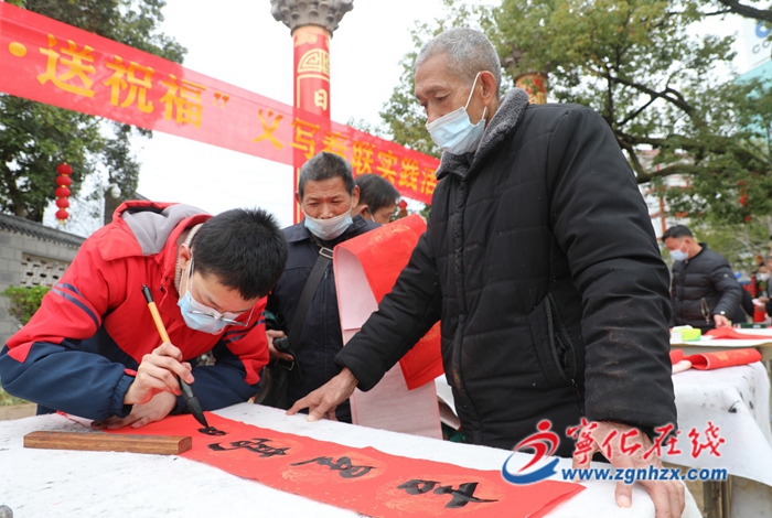 當日,師生志愿者現場義寫春聯7300余副,“福”字3000余個,營造了濃厚的年味。