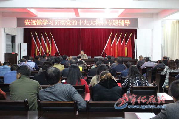 ? ? 11月14日晚,寧化縣委常委、紀委書記江向榮到掛鉤聯系的安遠鎮,為黨員干部群眾宣講黨的十九大精神。縣武裝部副部長周孝軍,鎮機關全體黨員干部、各駐鎮部門負責人、安遠中學校務成員及部分村支部書記,共90余人到現場聆聽。?