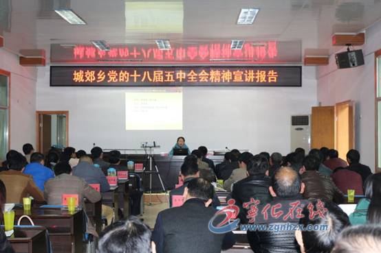 ? ? 12月15日,城郊鄉組織召開學習黨的十八屆五中全會精神宣講報告會,全體鄉干部職工、村書記主任共100余人參加。