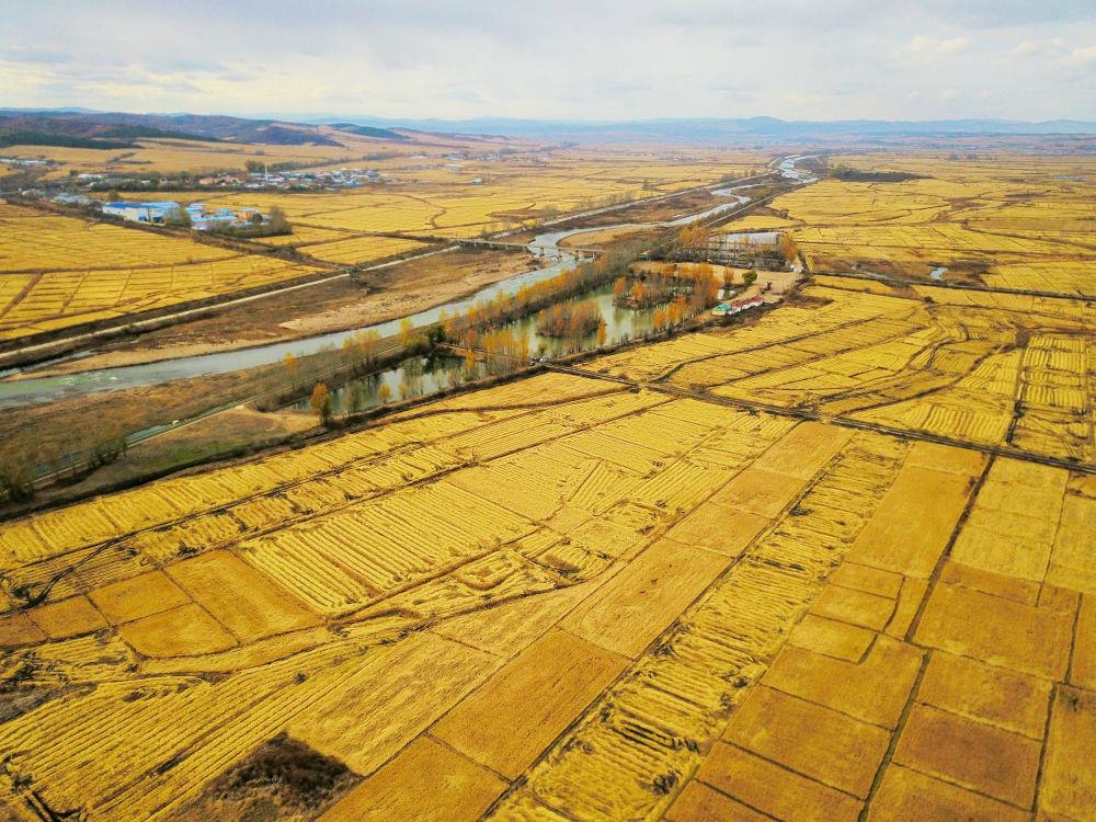 △吉林延邊州光東村的秋收稻田