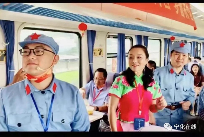 火車首發(fā)日,寧化志愿服務(wù)上火車,客家山歌一路行!