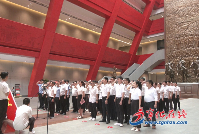 上午9時,活動開始,全場肅立、奏唱國際歌,在領誓人的帶領下,百余名新黨員代表高舉右拳,目光堅定,以鏗鏘有力的宣誓聲,堅定地表達不忘初心、砥礪奮進的信念及決心,向黨和人民作出莊嚴承諾。活動中,新黨員代表們表示將始終牢記入黨誓詞,時刻用黨員的高標準嚴格要求自己,在各自本職崗位上發揮共產黨員先鋒模范作用,在新時代新征程中奮勇爭先、建功立業。