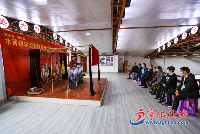 “黨中央召開二十大,喜訊傳到你我他;學習貫徹二十大,干部群眾齊宣傳;新時代新征程,黨的中心任務有了新方向……”在水茜鎮沿口村非遺傳習所內,一場富有民俗特色的宣講活動正在熱鬧舉行。當地民俗表演者把省級非物質文化遺產“木偶戲”和黨的二十大精神宣講相結合,將黨的二十大精神傳遞到群眾心間。