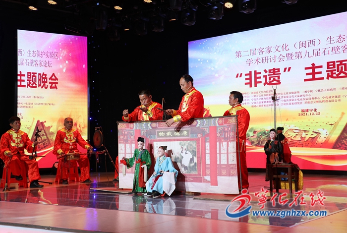 12月22日,第二屆客家文化(閩西)生態保護實驗區學術研討會暨第九屆“石壁客家論壇”系列活動“非遺”主題晚會在寧化融媒體中心演藝廳舉辦。省委宣傳部副部長、省新聞出版局(版權局)局長、一級巡視員肖貴新,三明市委常委、宣傳部部長陳列平,以及吳茂生、杜寶山、周美華等縣領導,與參加學術研討會和客家論壇的專家學者一同觀看。