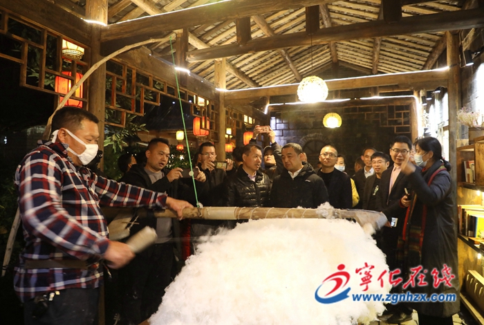 “看到彈棉花、擂擂茶等項(xiàng)目,我便想起自己的童年經(jīng)歷。說到擂茶,我就想起客家先民歷盡千辛萬苦,從中原輾轉(zhuǎn)到南方,他們身上所表現(xiàn)出來的勤儉持家、艱苦樸素的精神,這也反映了客家人熱情好客的性格。”將樂縣委黨校高級(jí)講師、楊時(shí)研究會(huì)副會(huì)長肖勝龍當(dāng)晚也來到水門古巷,參觀后很是感慨,他認(rèn)為寧化“非遺”保護(hù)工作做得好,值得學(xué)習(xí)和借鑒。