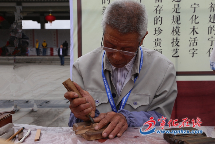 陽春三月,寧化縣方田鄉朱王村木活字印刷術傳習所內,木活字印刷術傳承人謝應生正神情專注地坐在四方桌前,柔和的燈光照射在他手中的刻刀上,他右手執著刻刀,在固定字模上不時輕輕撥挑,完全沉浸在自己的刻字世界里,時光仿佛在此刻靜止……