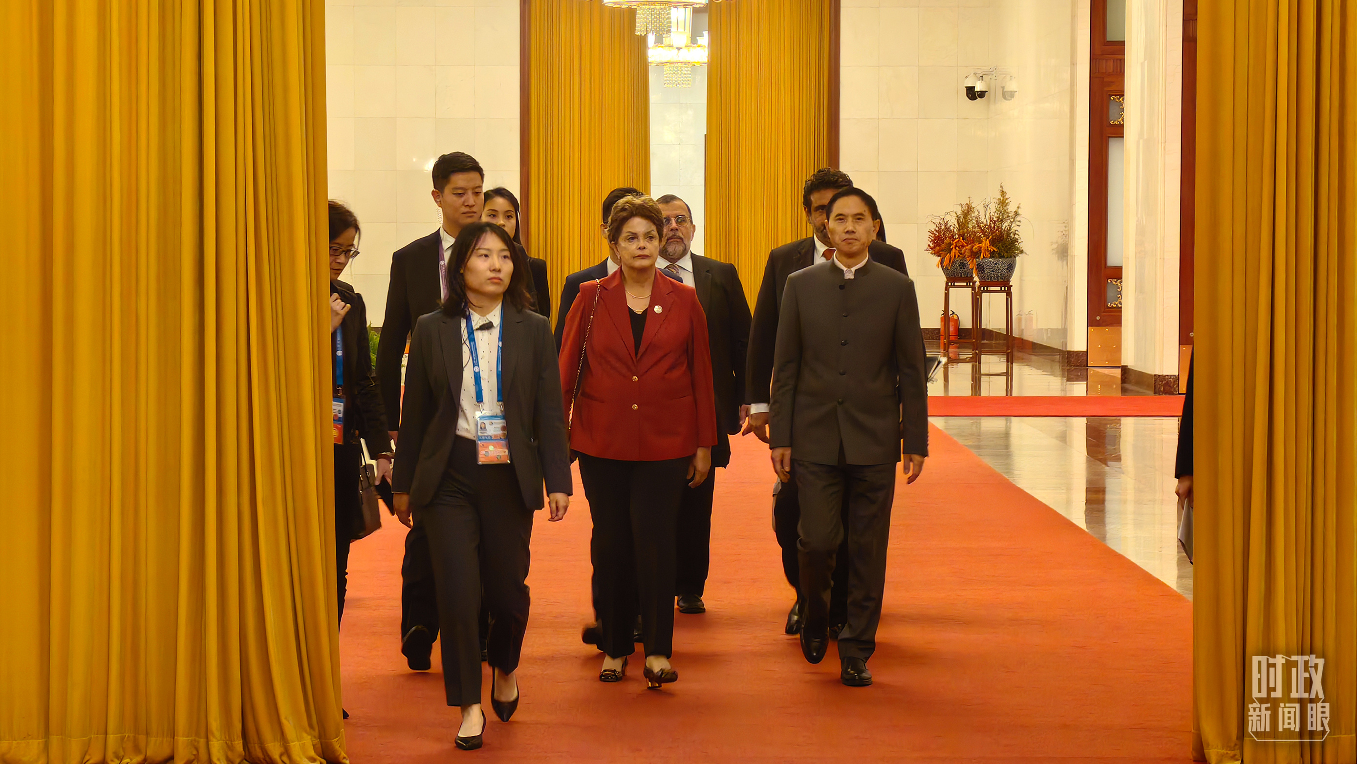 △人民大會(huì)堂,蒙古國總統(tǒng)呼日勒蘇赫走向會(huì)見廳。(總臺(tái)國廣記者李晉拍攝)