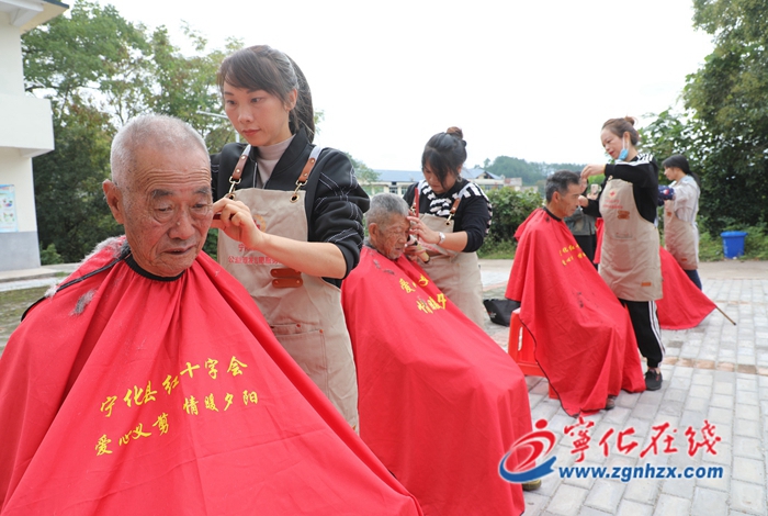 孫坑村祖祠內外熱鬧非凡,老人們一邊享受豐盛的美食,一邊欣賞舞臺上的精彩節目,臉上洋溢著滿滿的幸福感。當天上午,寧化縣委編辦、縣民政局、縣紅十字會、縣葛藤凹社會工作服務中心等部門組織志愿者走進孫坑村,開展“愛在金秋,共度重陽”重陽節孝老敬老系列活動。愛心志愿者為孫坑村老人免費理發、修腳,并向老人宣傳反電訊詐騙、預防高血壓、應急救護等健康知識。