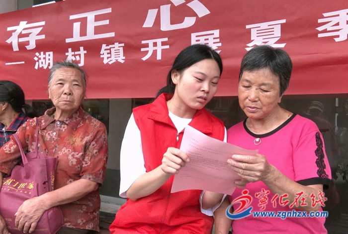 在湖村鎮新時代文明實踐所,志愿者及葛藤凹社工現場為群眾講解夏日養生及防暑知識,并向他們介紹防暑包物品使用方式以及注意事項。活動結束后,還為現場群眾一一送上綠豆湯、草帽、清涼油、花露水等防暑物資。