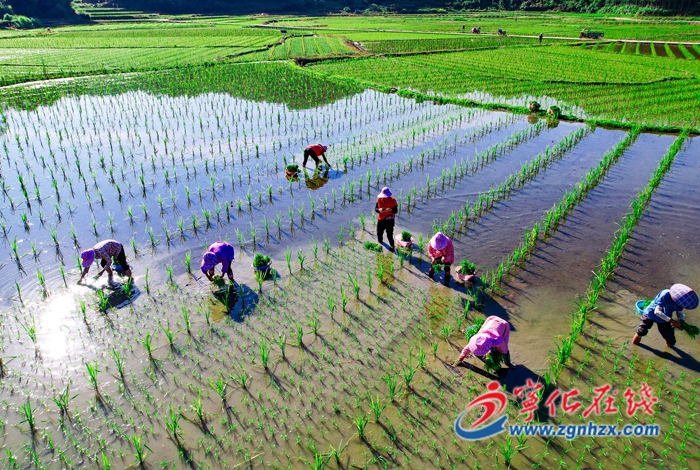 經指導后,村民們頭戴斗笠,卷起褲腳,在田間來回穿梭,一手一株,嫻熟地將嫩綠的秧苗插入田里。黃澤林當天雇請了30多名村民移栽秧苗,每人每天140元,按日結算。在家門口就能干活掙錢,村民們邊插邊聊,不時傳出陣陣歡聲笑語。