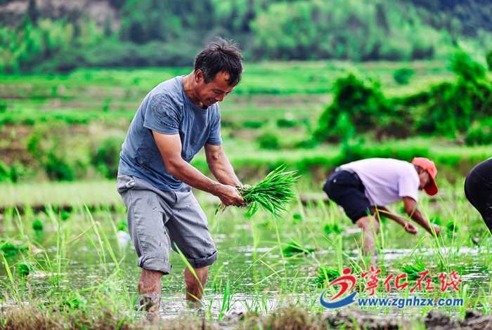 7月5日,在寧化縣安遠(yuǎn)鎮(zhèn)張?jiān)咫s交水稻制種基地,10多位村民擼起袖管卷起褲腿,彎著腰在田里勞作著,談笑間,一行行翠綠粗壯的母本秧苗挺立在田中,輕風(fēng)拂來,稻葉搖曳,預(yù)告著今年種子的豐收。