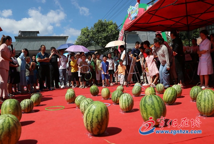 活動現場人潮涌動,主辦方不僅讓前來打卡觀光的游客免費品嘗了臺灣酵素西瓜、甜玉米以及現割蜂蜜等特色美食,還舉行了吃瓜比賽、西瓜套圈等精彩的游戲,讓參與活動的游客們充分感受到了豐收的喜悅。
