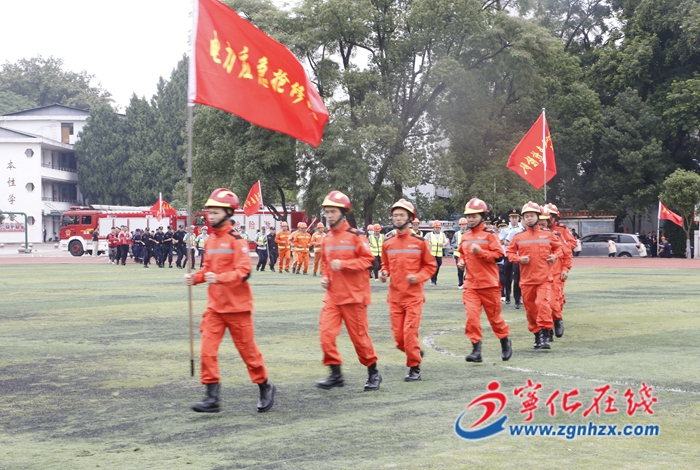 現場演練模擬寧化縣城第六中學附近受6.0級地震影響,房屋結構遭破壞,出現裂縫,余震延續破壞,發生火災、山體滑坡、水管斷裂、學生受困、人員受傷、通訊終端等突發情況。寧化縣抗震救災指揮部接到災情報告后,立即啟動地震應急預案,同時組織各部門各應急搶險工作救援組進行緊急救援。縣應急局、公安局、教育局、交通運輸局、水利局、氣象局、衛健局、住建局、消防救援大隊等成員單位分管負責同志和專家趕赴震區指導抗震救災工作,同時市地震局、市森林消防救援支隊派出專家和隊伍趕赴現場指導救援工作。