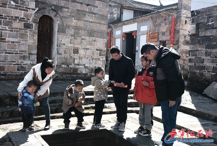 敬湖公祠門前燈籠高掛,石獅子也掛上了紅花,展現出傳統古建筑的獨特魅力,處處充滿著濃郁的年味。再往八十里鋪方向走去,坐在小院里,在春光下圍爐煮茶,一家人暢聊嬉戲,這般幸福時光美得像畫卷。