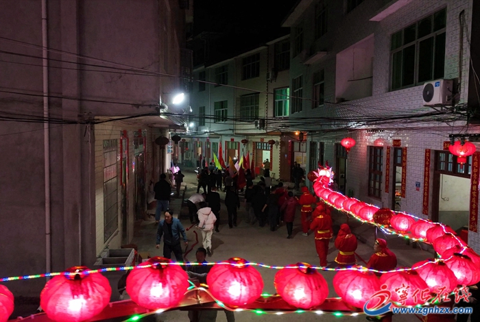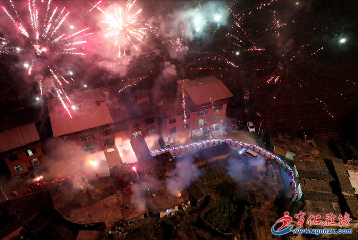 夜幕降臨,村中的青壯年各抬著龍燈在熱鬧的鑼鼓和鞭炮聲中走家串戶,龍燈所到之處村民以鞭炮、煙花迎接,男女老幼紛紛上街觀賞,整個村莊一派喜氣祥和,洋溢著濃濃的年味。