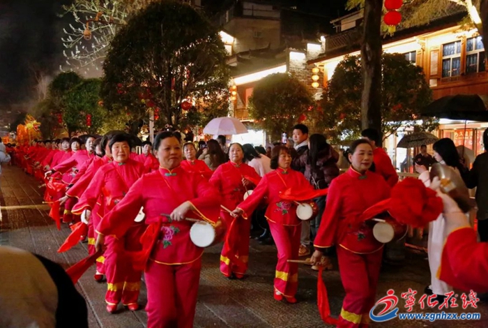 此外由各鄉鎮帶來的腰鼓、淮土馬燈舞、湖村舞龍舞獅、牌子鑼鼓、旱船等特色非遺項目沿著寧陽古街的路線繞圈巡演,歡快的鼓點,舞動鮮艷的紅綢,載歌載舞,馬路兩旁觀眾圍得水泄不通,人們的心被鑼鼓敲得“沸騰”,被舞龍舞獅舞得“火熱”,不停的用手機記錄著精彩瞬間。