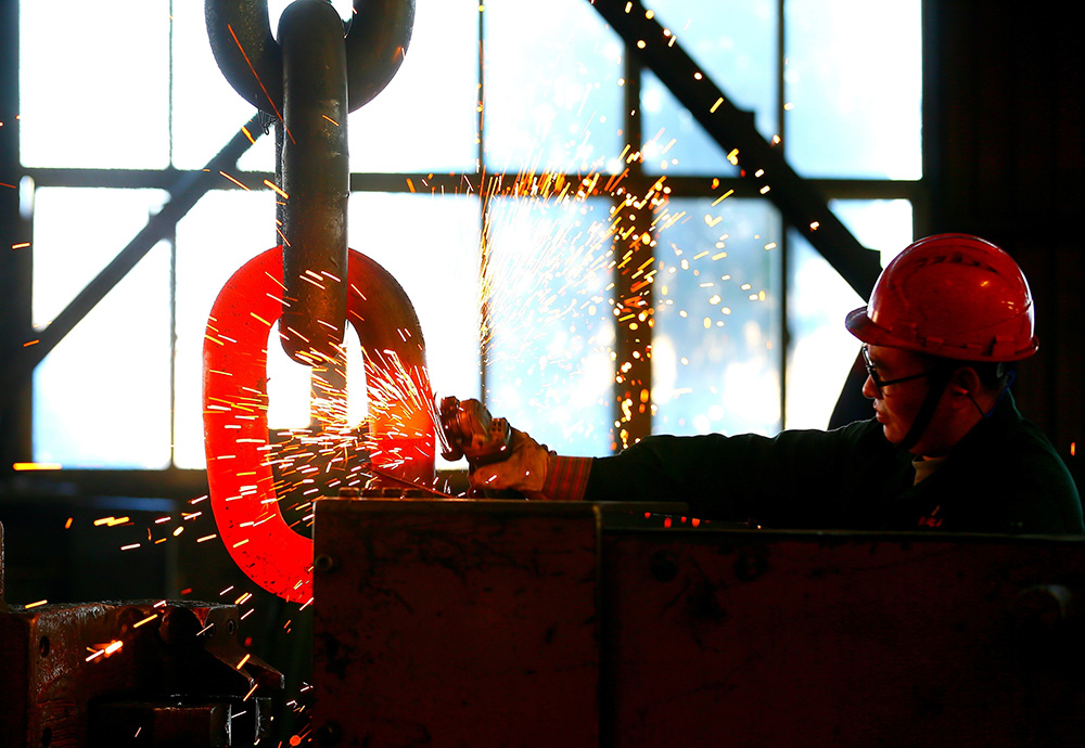 △ 2024年2月17日,青島市,即墨區靈山街道一家錨鏈企業,工人正在忙碌。