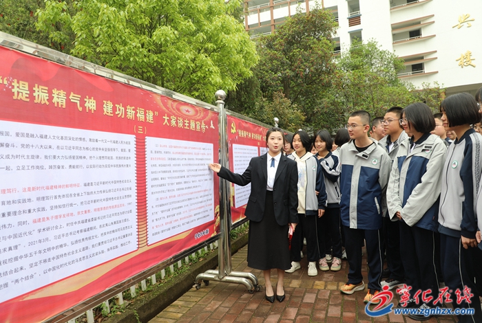 師生齊聚操場,聆聽“提振精氣神,建功新福建”主題宣講,并前往“提振精氣神,建功新福建”主題宣傳欄前進行閱讀與交流,從中汲取奮進之力。當天也是學生團日活動,學校還舉辦了“提振精氣神,建功新福建”主題班會及“我的青春我的團”紅色演講比賽。
