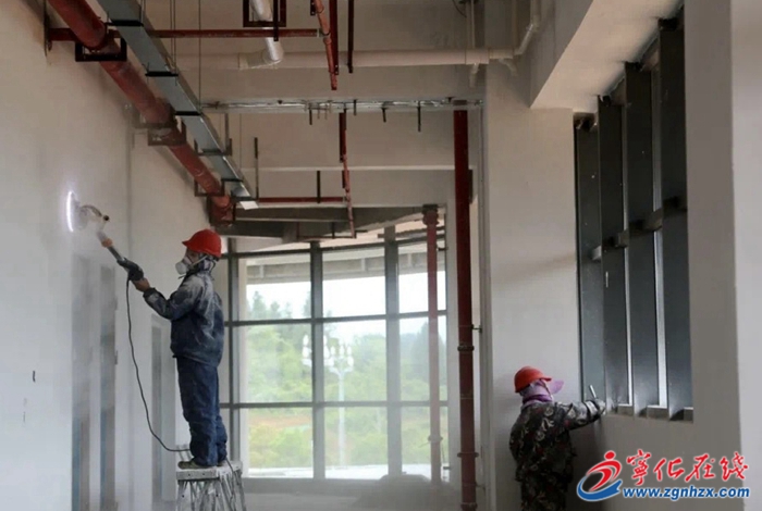 這個項目是市重點項目,總建筑面積約2萬平方米,包括教學樓、宿舍樓、多功能廳等,同時配套建設道路硬化、綠化、圍墻等附屬工程。目前項目主體結構完成,宿舍樓、教學樓、多功能廳的外墻干掛跟玻璃幕墻基本完工,進入室內裝修階段。