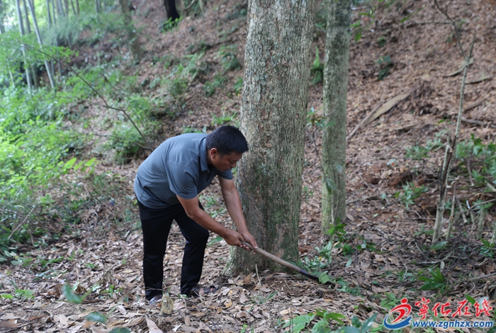 2017年初的一天晚上,雷雨大作,一株楠木被雷擊中,整株樹被劈成對半,樹枝被燒焦,折斷的一半樹木倒在地上,村民發現后,立即聯系林業站工作人員來現場搶救古樹。“當時,我們將燒焦的枯枝用小刀刮干凈,將折斷的樹枝、樹皮用黃泥巴鋪上去,然后用塑料膠帶粘住,之后的一年,定期給這株樹澆水。”伍小輝說,經過當年的及時搶救,以及后來的悉心照料,古樹第二年開始抽新芽,逐漸恢復昔日的滿目蒼翠。