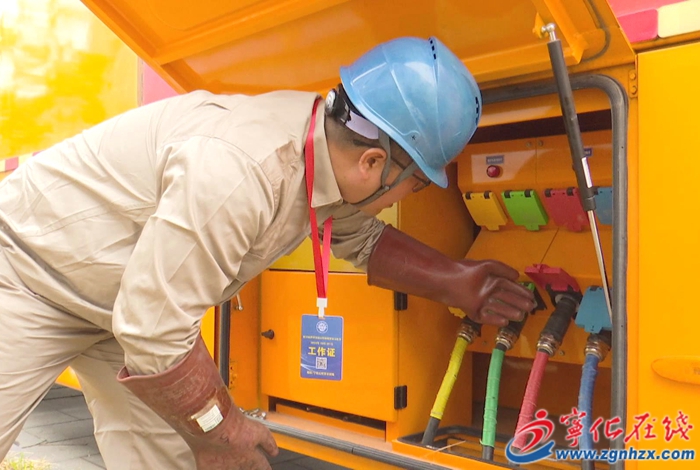 為保障祭祖大典期間用電安全,國網寧化縣供電公司積極組織人員開展電力巡檢,為祭祖大典護航。在活動現場,工作人員正對應急電源車供電線路進行巡查,對配電柜及用電設施進行檢查,確保祭祖期間用電安全通暢。
