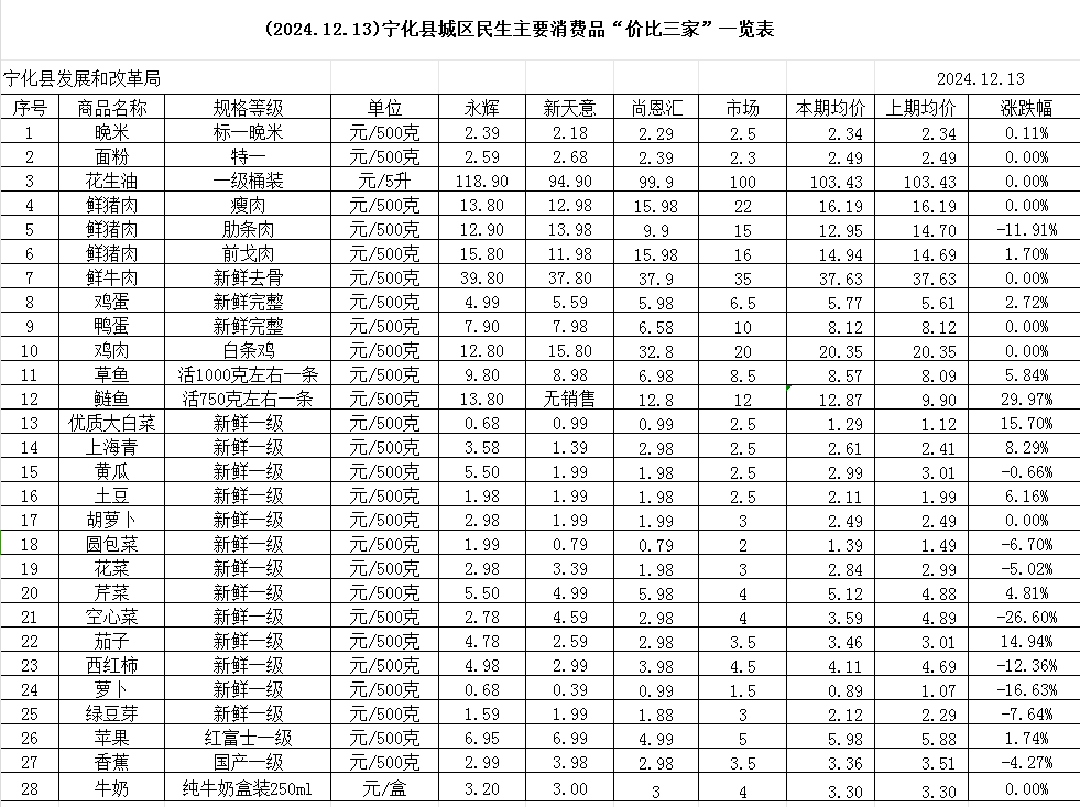 (2024.12.13)寧化縣城區(qū)民生主要消費品“價比三家”一覽表