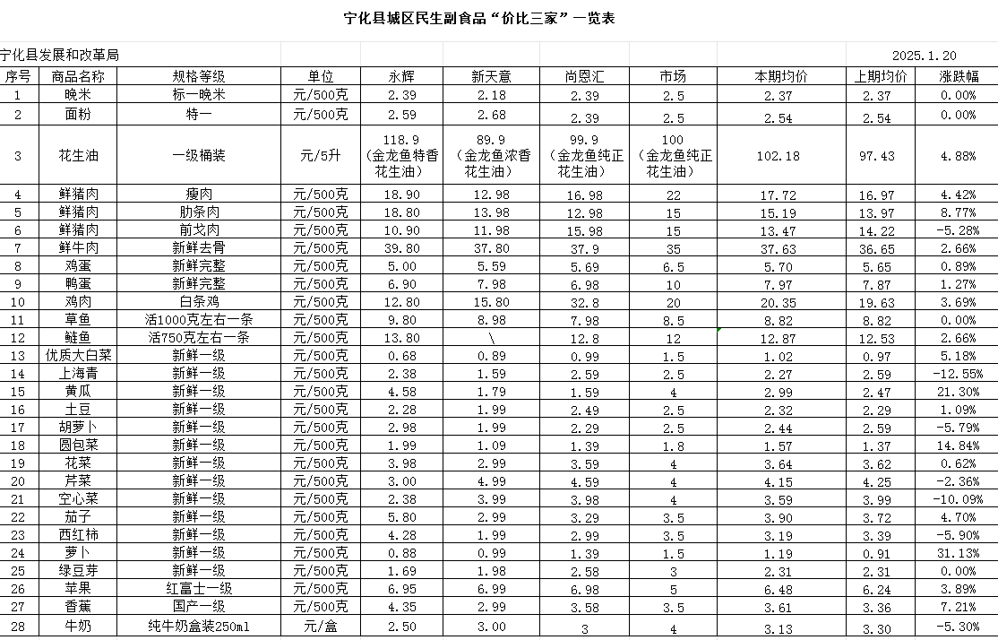 寧化縣城區民生副食品“價比三家”一覽表(12.1)