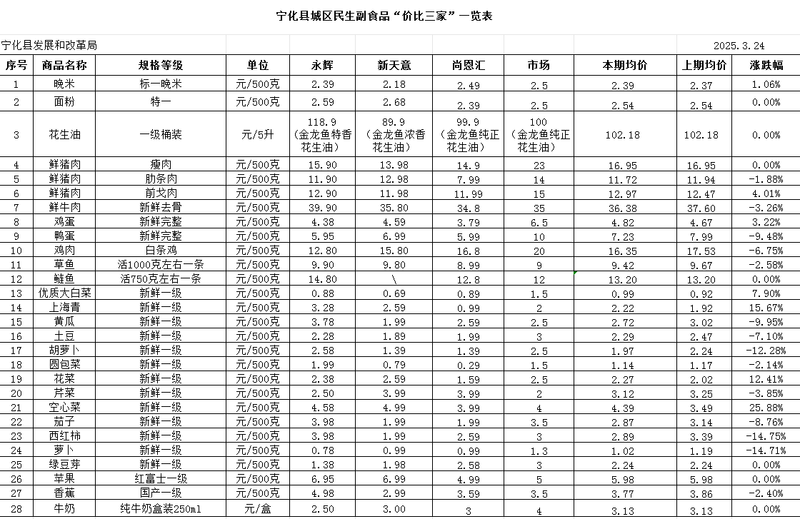 寧化縣城區民生副食品“價比三家”一覽表 (3.24)