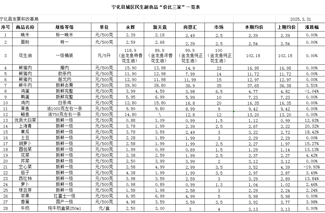 寧化縣城區民生副食品“價比三家”一覽表 (3.31)