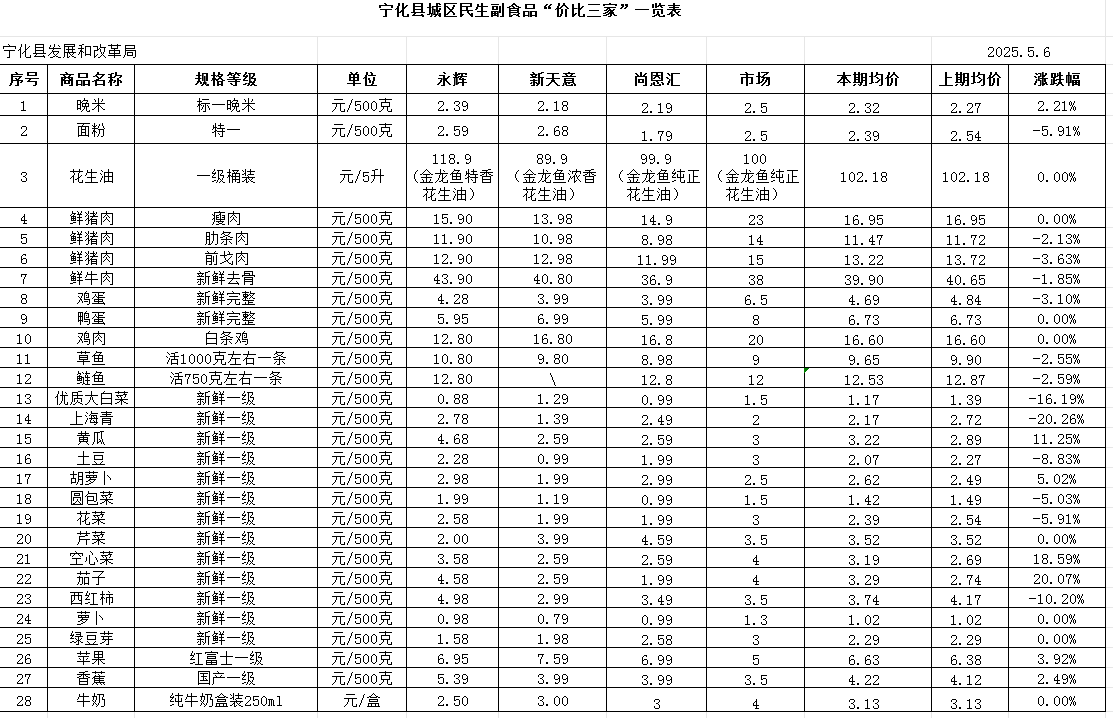 寧化縣城區(qū)民生副食品“價比三家”一覽表(5.12)