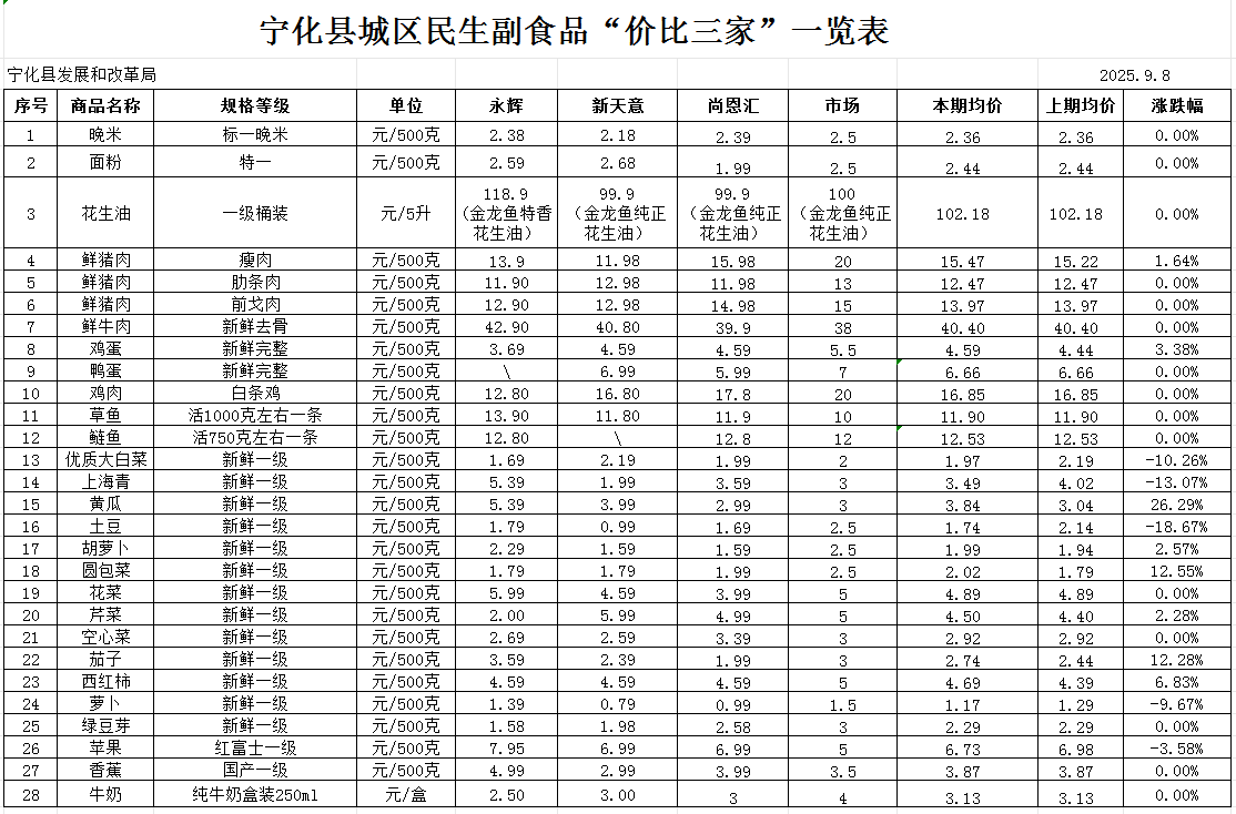 寧化縣城區民生副食品“價比三家”一覽表(9.01)