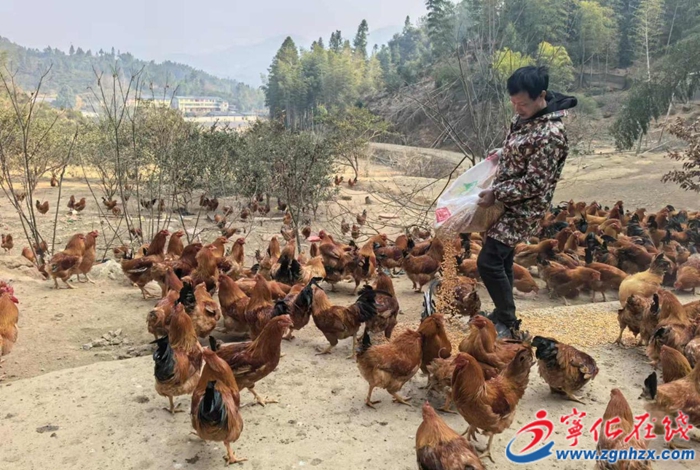 在河龍鄉永建村的河龍貢雞產業融合發展基地里,養殖大戶伍基興正忙碌地穿梭其中。