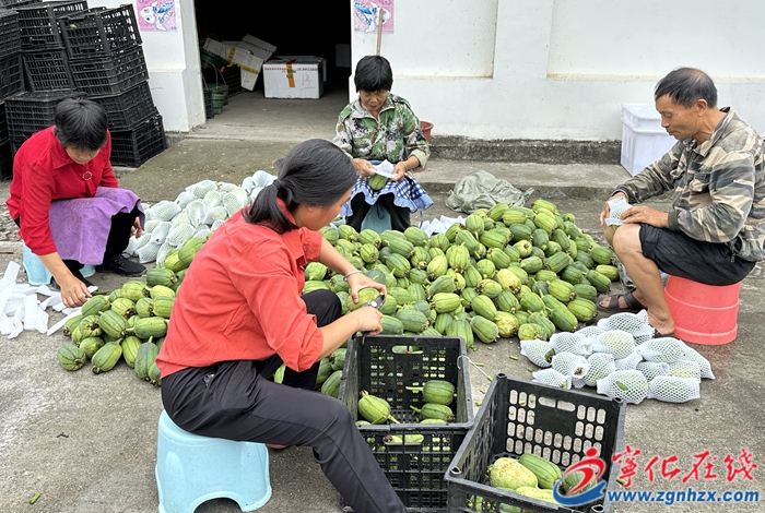 圖為去年蘋果絲瓜豐收,村民在進行分揀包裝