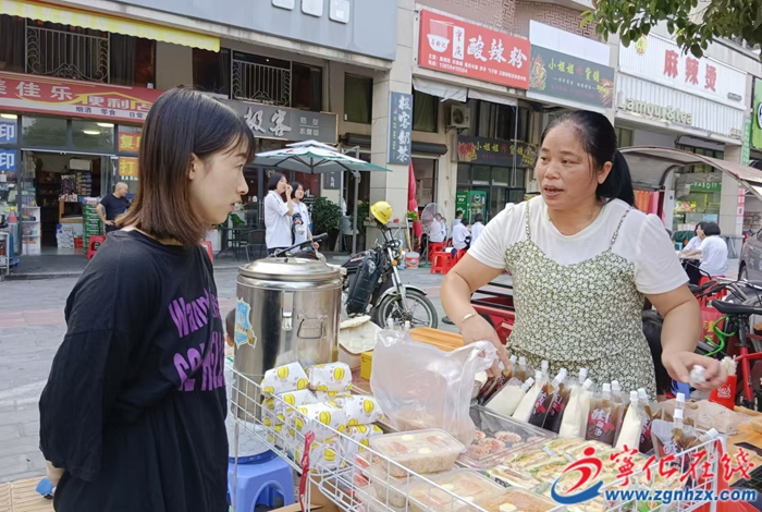 寧化縣城郊鎮濱江壹號小區門口人來人往,吳金財站在三輪車前忙碌不已,開始推銷餐車上的美食。