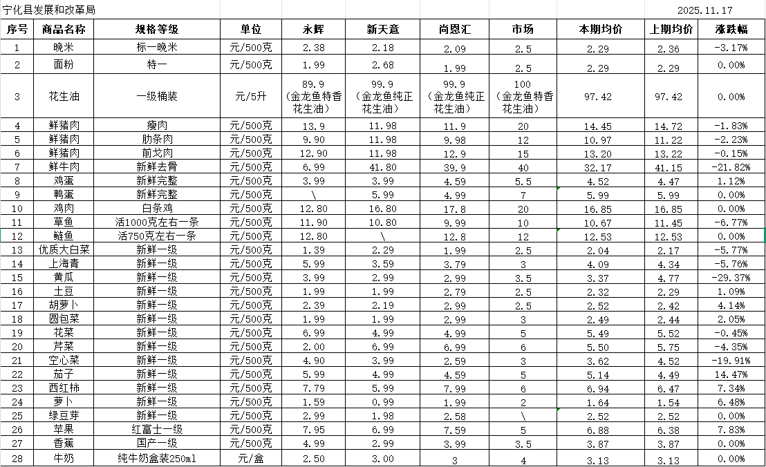 寧化縣城區民生副食品“價比三家”一覽表(11.17)