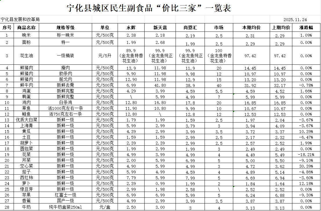 寧化縣城區民生副食品“價比三家”一覽表(11.24)