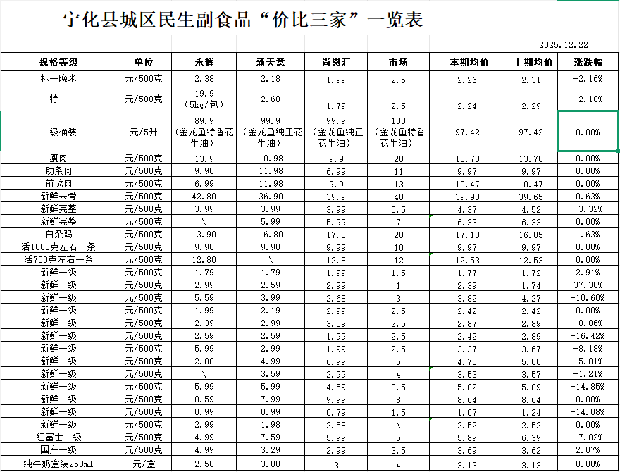 寧化縣城區民生副食品“價比三家”一覽表(12.22)