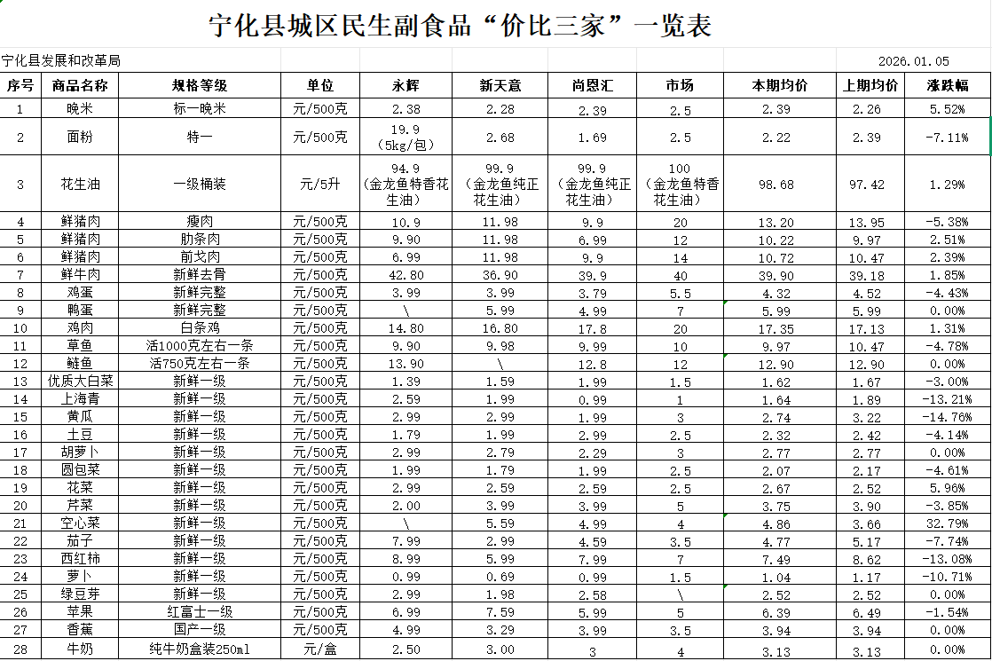 寧化縣城區民生副食品“價比三家”一覽表(1.12)