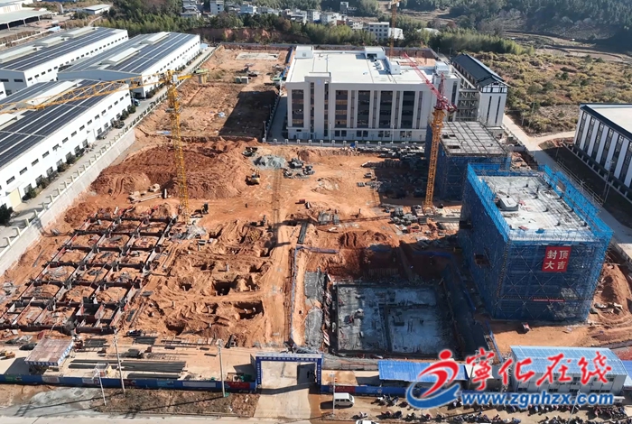 “目前已完成6號綜合樓封頂,5號綜合樓已經到5層梁板。計劃春節(jié)前所有基礎地面以下全部做完,春節(jié)后就開始三棟廠房主體施工。 ”現(xiàn)場施工負責人羅培金介紹。