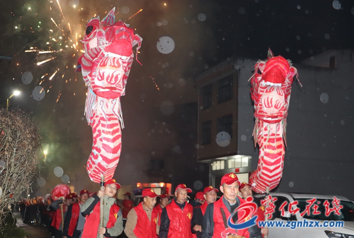 當璀璨煙花劃破夜空,清脆鞭炮聲此起彼伏,由村民組成的舞龍隊伍登場,他們手舉板凳龍,默契配合、騰轉挪移,將龍的靈動與神韻展現得淋漓盡致,閃耀的燈光隨著龍身舞動,在夜色中勾勒出靈動的龍形,成為夜晚最美的風景。舞龍隊伍行至每處,那里就有村民們的熱情迎接,鞭炮聲、煙花聲、歡呼聲、喝彩聲不絕于耳,大家沉浸在喜慶祥和的新春氛圍中,年味愈發醇厚。