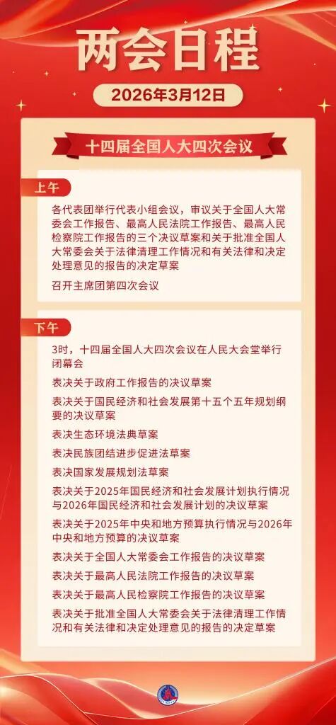 兩會日程預告|3月12日:十四屆全國人大四次會議閉幕