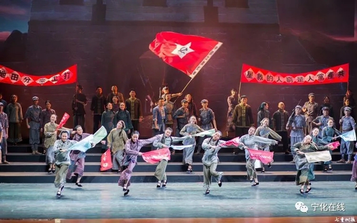 4月17日,來自寧化縣的基層演員李林蔚,在微信朋友圈曬出了情景交響音詩《風展紅旗如畫》排練照——8名“紅軍戰士”血戰湘江的場景,并配文:“準備戰斗,我們都是客家的好兒郎。”