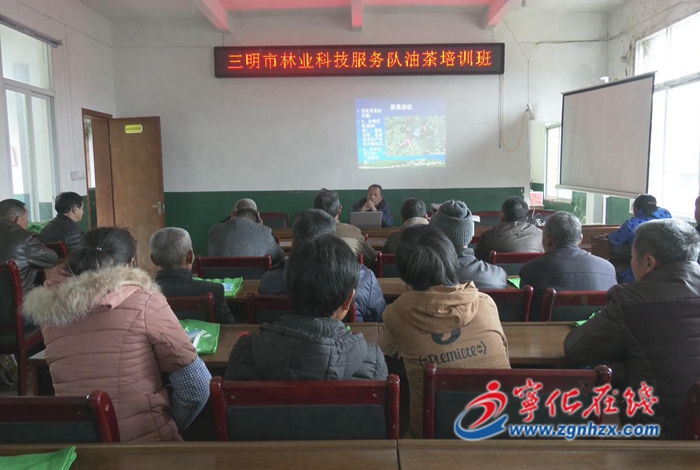 12月22日,三明市林業局組織林業科技服務隊到寧化縣泉上鎮泉永畬族村開展油茶培訓,向種植戶傳授油茶豐產技術,來自該村40余名油茶種植戶參加了培訓。
