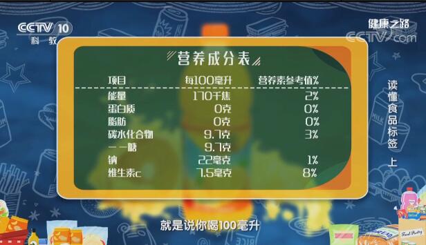 央視網消息:中國疾病預防控制中心營養與健康所何麗研究員介紹,學會看配料表很重要。果汁飲料中原果汁含量應該控制在10%左右。