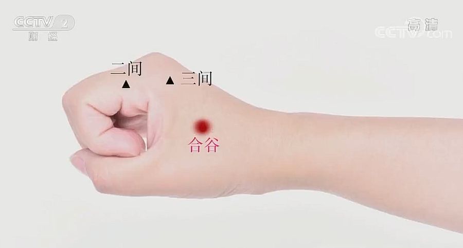 第三個叫合谷穴,合谷穴位于第一掌骨與第二掌骨的中點,只要是所有頭面部的疾病,都可以按壓合谷穴。