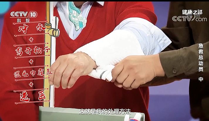 正確的做法是用自來水沖傷口,直到疼痛明顯減輕。