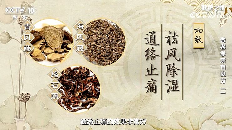 青風(fēng)藤、海風(fēng)藤、絡(luò)石藤袪風(fēng)除濕、通絡(luò)止痛。