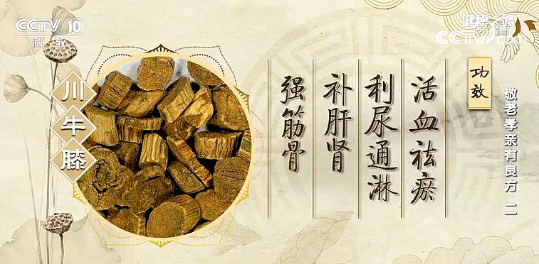川牛膝補(bǔ)肝腎、強(qiáng)筋骨、活血祛瘀、利尿通淋。