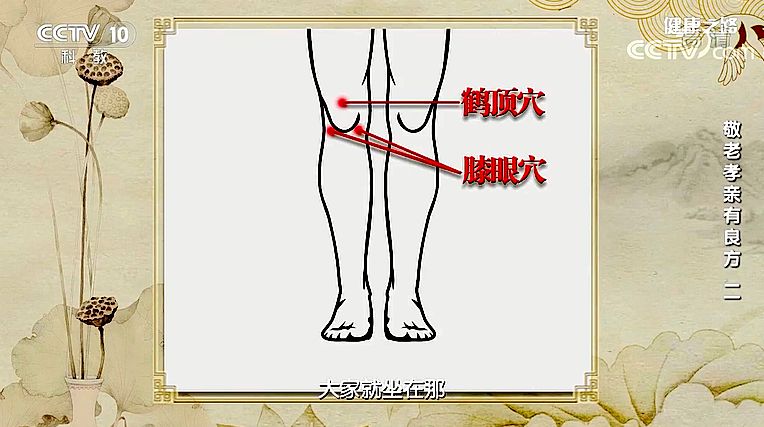 除了補(bǔ)腎壯骨方,專家表示,還可以按摩膝眼穴和鶴頂穴,可以經(jīng)常按摩這兩個(gè)穴位,對(duì)膝、髕骨有好處。(資料來(lái)源:央視《健康之路》)