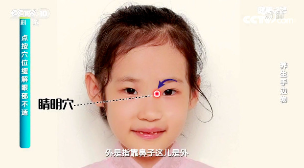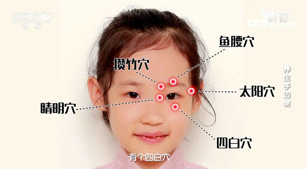 點按眼部穴位可以緩解眼睛不適。眼部常見的穴位有內眼角的睛明穴,眉頭處的攢竹穴,眉毛中央的魚腰穴,外眼角再往后一點的太陽穴以及瞳孔直下用手摸有一個凹陷地方的四白穴。